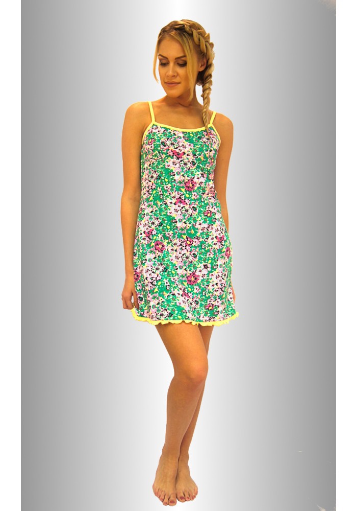 Описание: Сорочка - на бретелях с отрезной кокеткой, по низу отделка рюш