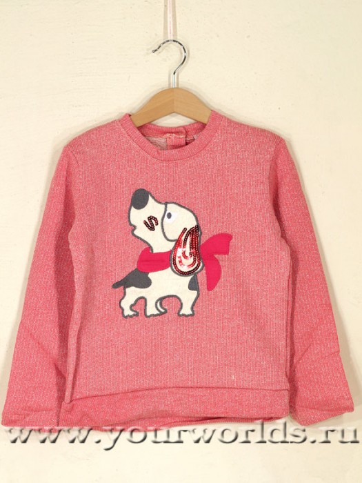 Модная красная с люрексом детская кофта для девочки из трикотажа, украшенная красивой аппликацией - меховой собачкой. Кофта теплая без начеса.