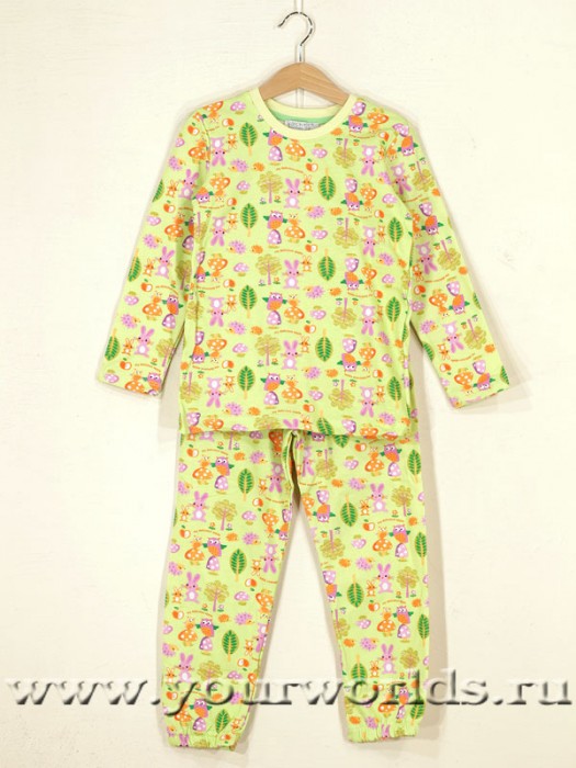 Пижамы теплые, пошиты из фланели с нанесением рисунка забавных зверюшек: зайца, ежика и совы.