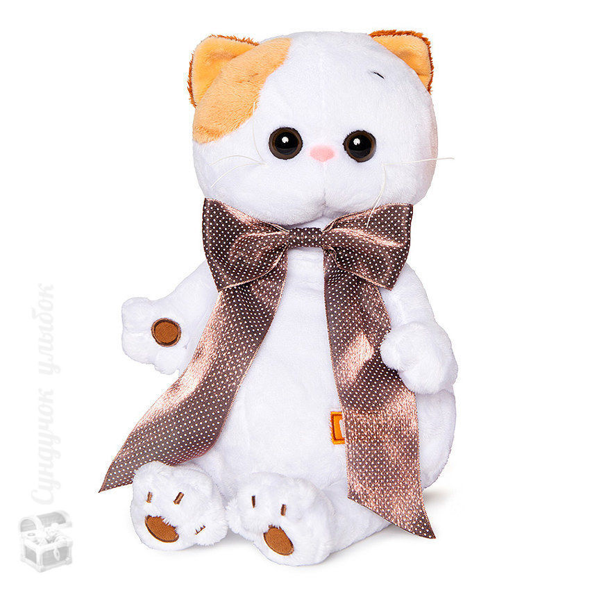 Кошечка Ли-Ли с атласным коричневым бантом 27 см