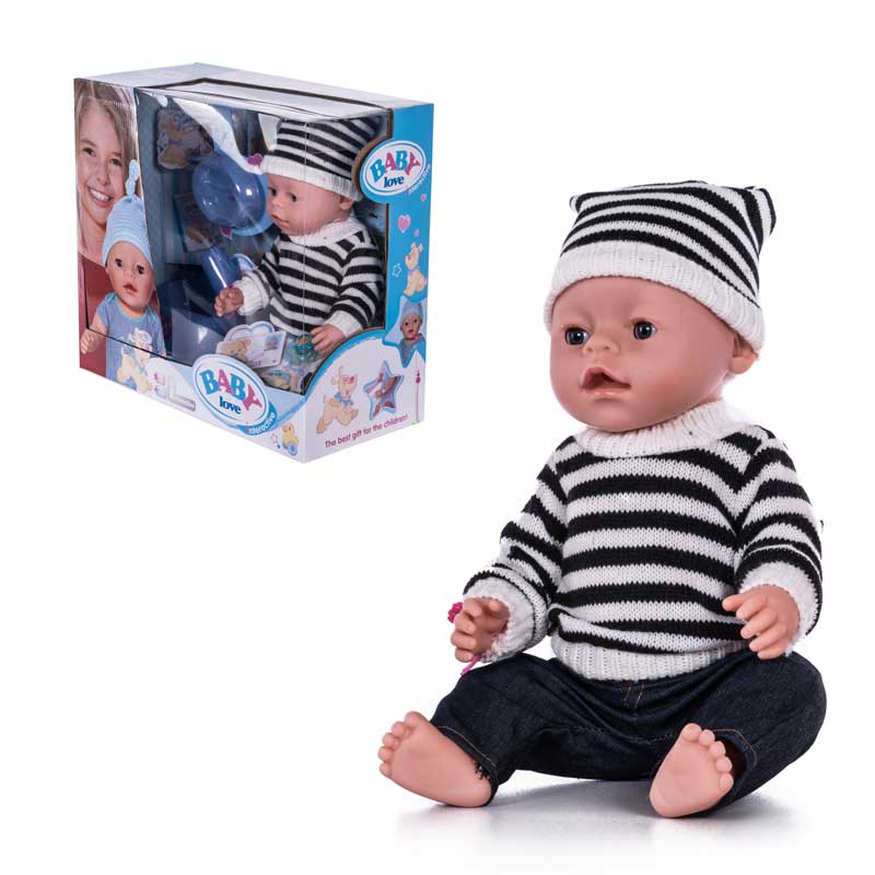 В комплекте с интерактивным карапузом вы найдете 10 аксессуаров, среди которых есть пустышка, посудка для кормления, горшок, подгузник и многое другое. Также он одет в нарядный костюмчик, который, при необходимости, можно легко снять.